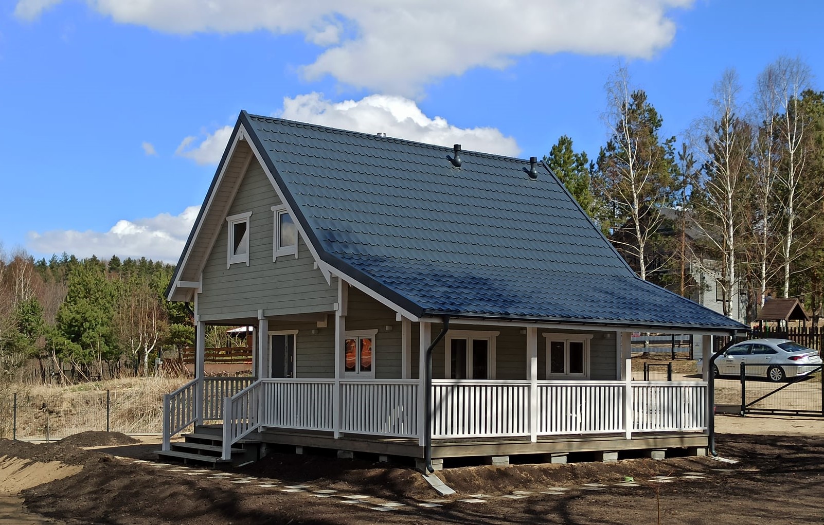 - Pokrycie dachu blacho dachówką + orynnowanie